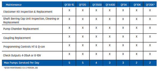 Introducing, QuattroCare, the first of its kind Quattroflow Preventative Maintenance Program: the perfect solution for biopharma manufacturers needing seamless uptime and reliability of their Quattroflow pumps. With two visits per year to perform a multi-point inspection and routine maintenance, you will have the peace of mind that your pumps are in tiptop condition and that they will support your production schedule. Say hello to sustained productivity and 100% system uptime with Liquidyne’s Quattroflow Preventative Maintenance Program! With our program, you can be confident that your pumps will always provide reliable operation and maintain production schedules. Our maintenance services are designed to preserve the performance of your Quattroflow pumps – from QF 30 to QF 20K (a two person job). Our annual preventative maintenance plan includes two visits per year to conduct a multi-point inspection and update any worn parts. With this plan, you know that your Quattroflow pumps will be cared for by experienced professionals for optimal performance and longevity. Our professional engineers will also perform elastomer kit inspections and cleanings, shaft bearing kit inspections and cleanings, programming controls (HT and Q-con), coupling replacements, as well as check outputs between 4-20uA or 0-10V.